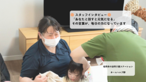 スタッフインタビュー|「あなたと話すと元気になる」その言葉が、毎日の力になっています 福岡市の訪問介護ステーション ホームヘルプ卵