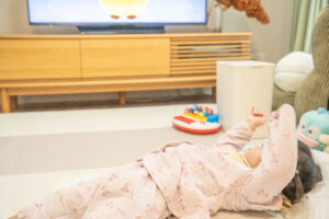 テレビを見ながら、自然と手を動かしたり、楽しそうに笑ったり。